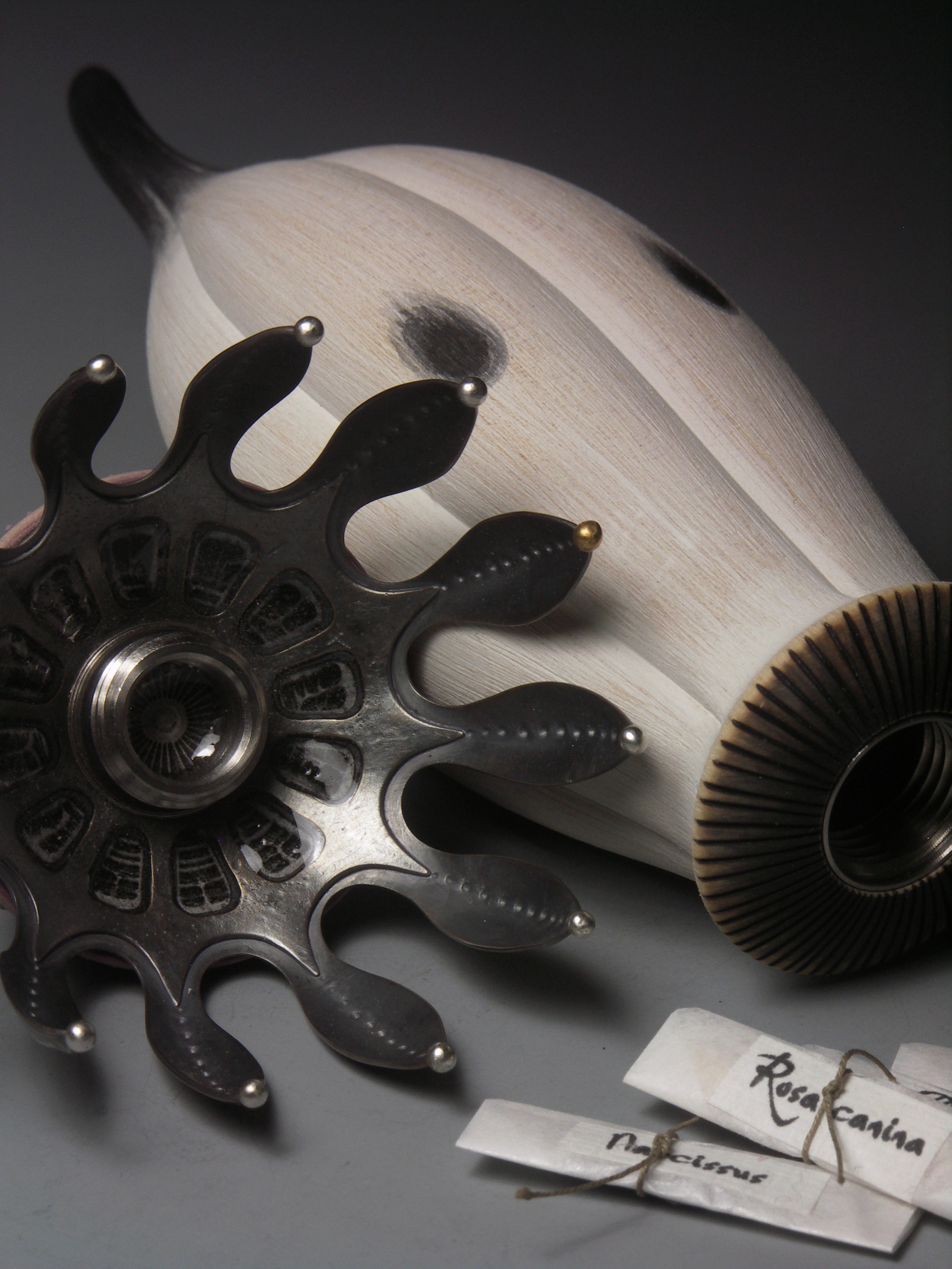 When I thought about the exhibiton theme Form/Content I decided to go back to a radiolarian as the starting point for this piece. The forms of these incredible microscopic sea creatures are so wonderful, and pieces I have created previously using their inspiration have pinpointed some important moments in my career, from the photographing of Radiolarian Vessel I by Tony Boase for his book, to the recent acquisition of Radiolarian Vessel VII by the Renwick Gallery.