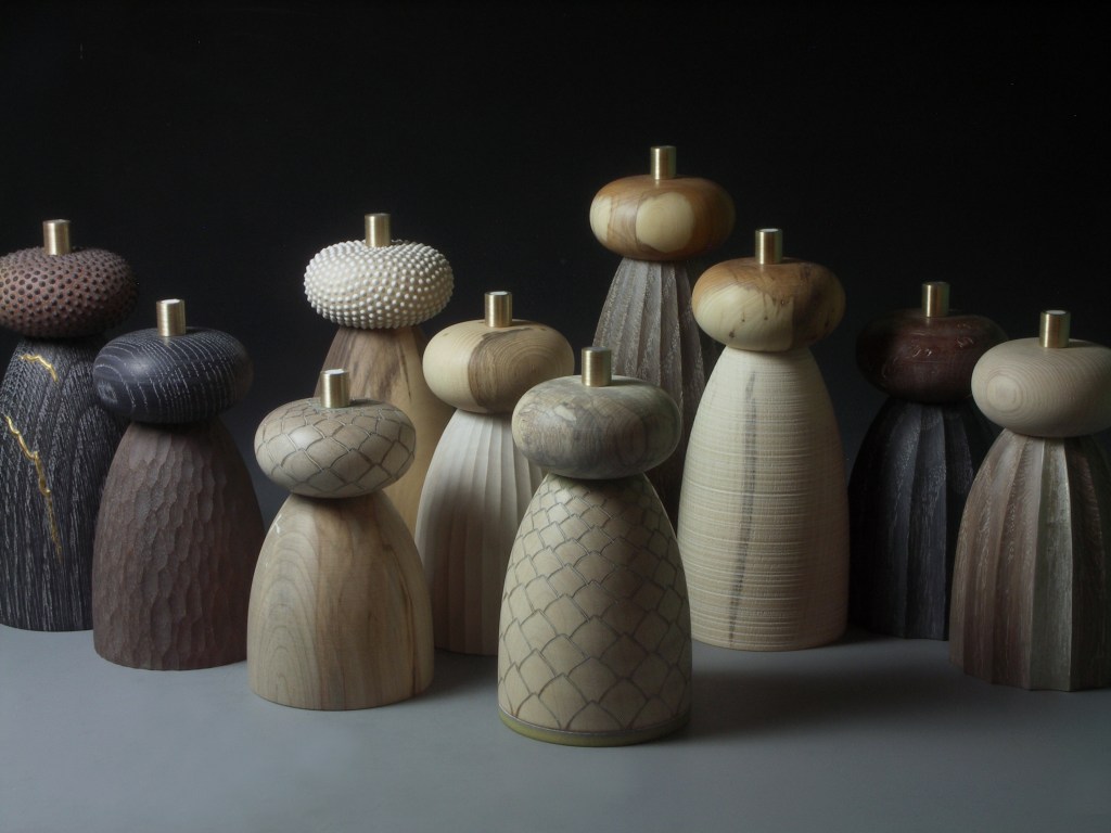So for this exhibition I have created A Collection of Mills. Creating unique, functional pieces has always been a priority for me—it’s my way of responding to the environmental challenges posed by our disposable culture. I strive to enrich daily life with meaningful objects, each mill a treasured item, often repaired and cherished over many years.