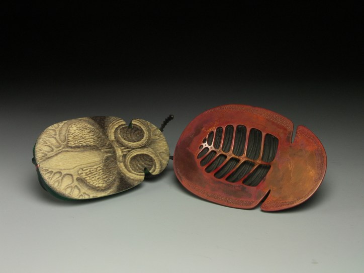 English sycamore, copper, silver, reclaimed 22ct gold, acrylic resin, epoxy resin, paper and acrylic ink.